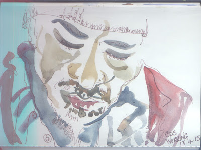 I am finding it hard to settle, must get back to sketching and painting again. On Saturday I went to the church in Plaza Candelaria, they have finished the outside and are now painting the inside and it is looking splendid, even though some of the figures/saints are missing... Fernandos Corazon de Jesus, which was a shock.. presumably they are doing restoration work on them. Today was lazy and just sketched on the terrace.